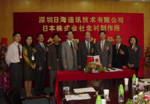 2004年4月13日,公司与日本株式会社北村制作所就户外一体化机房的设计、生产、销售和服务在710公海寰宇公司智能签订了合作协议,共同合资组建深圳北村710公海寰宇公司机房技术有限公司,并举行了隆重的签字仪式。公司周展宏董事长、王文生总裁、杨飞董事、机房事业部负责人孟庆光和日本北村制作所北村泰作...
